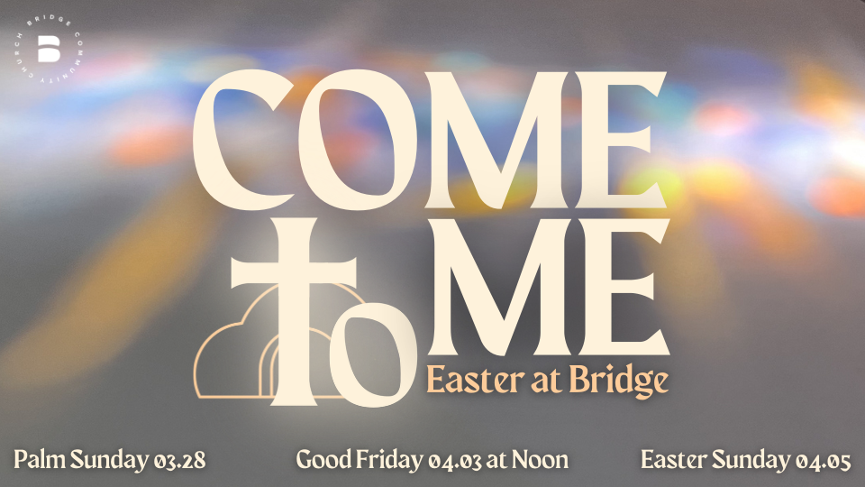Good Friday (April 3rd @ Noon): All are invited and welcome to join us on Friday, April 3rd at Noon in the Bridge Sanctuary as we remember and reflect on the sacrifice of Jesus for our Good Friday Service. This is a wonderful time to consider the weight of Jesus's sacrifice and prepare our hearts for the joy of resurrection life on Easter Sunday!